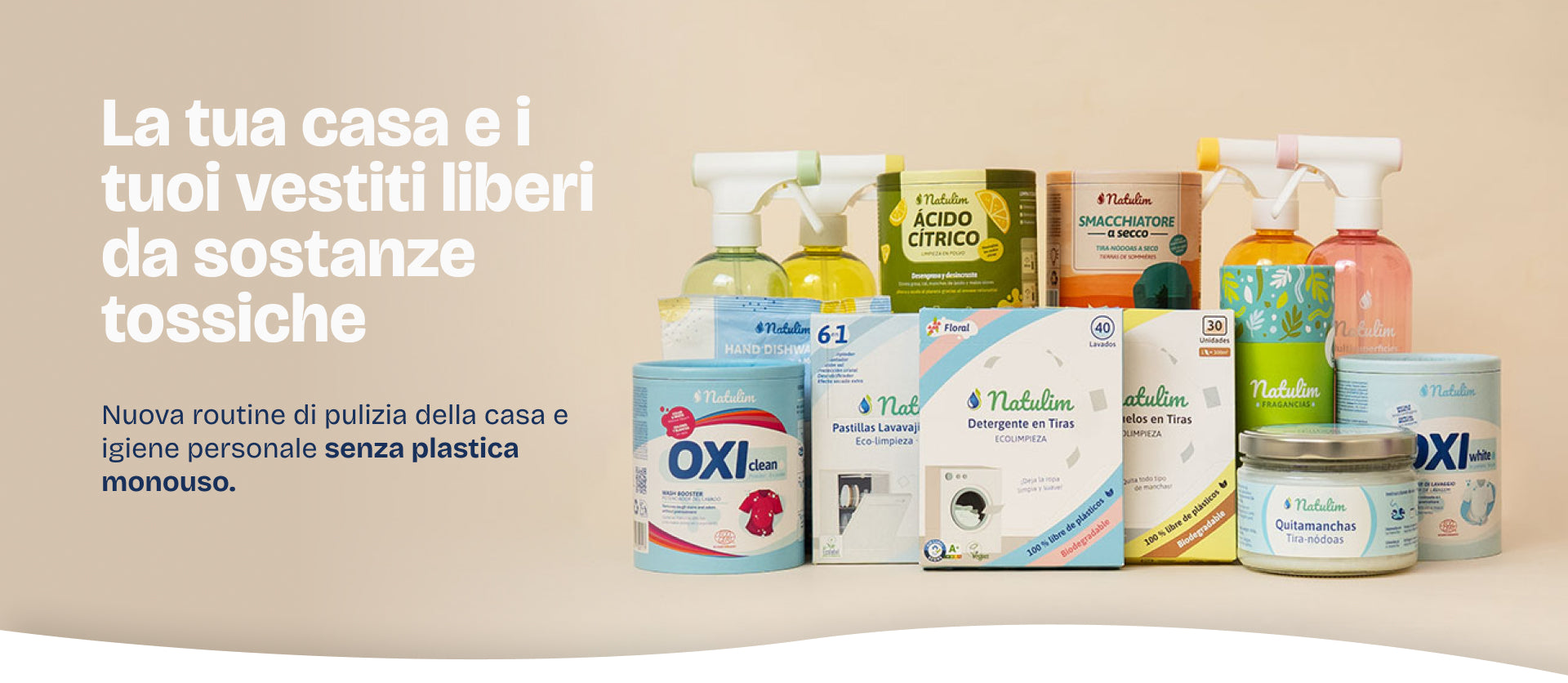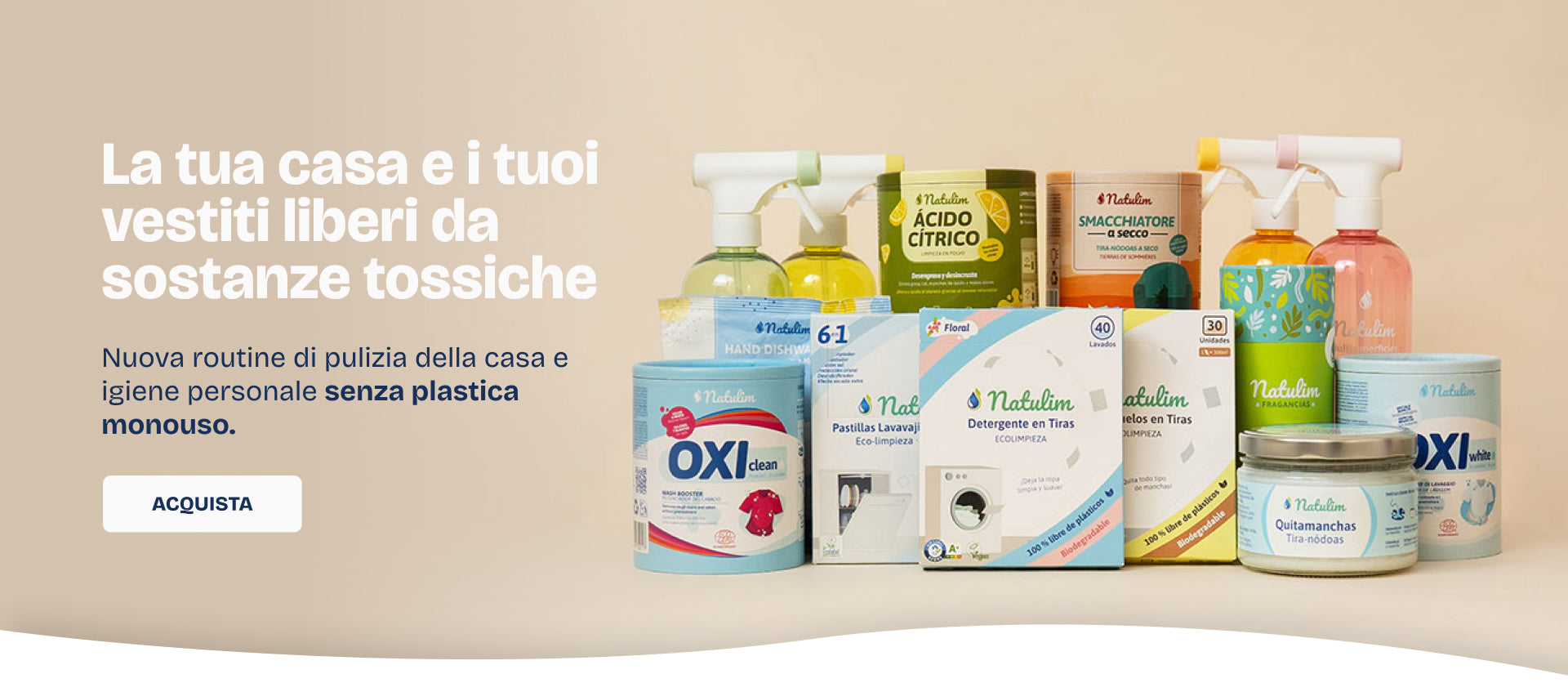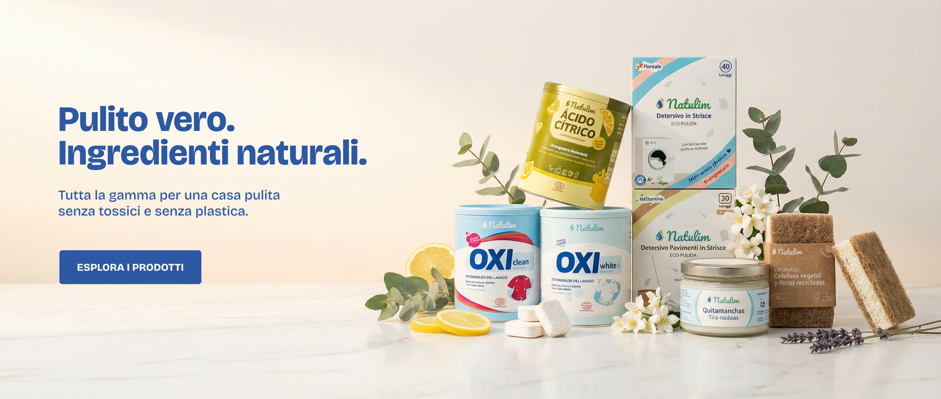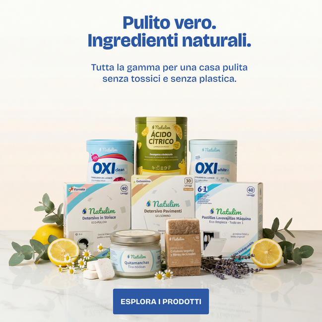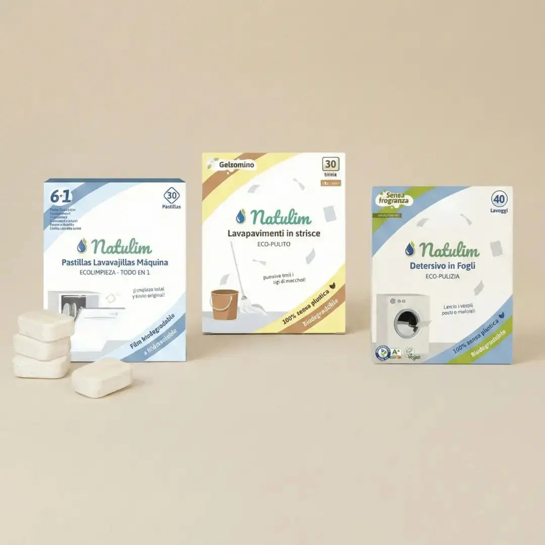 Natulim: detergenti efficaci in formato concentrato. Zero plastica, ingredienti certificati, confezioni biodegradabili.