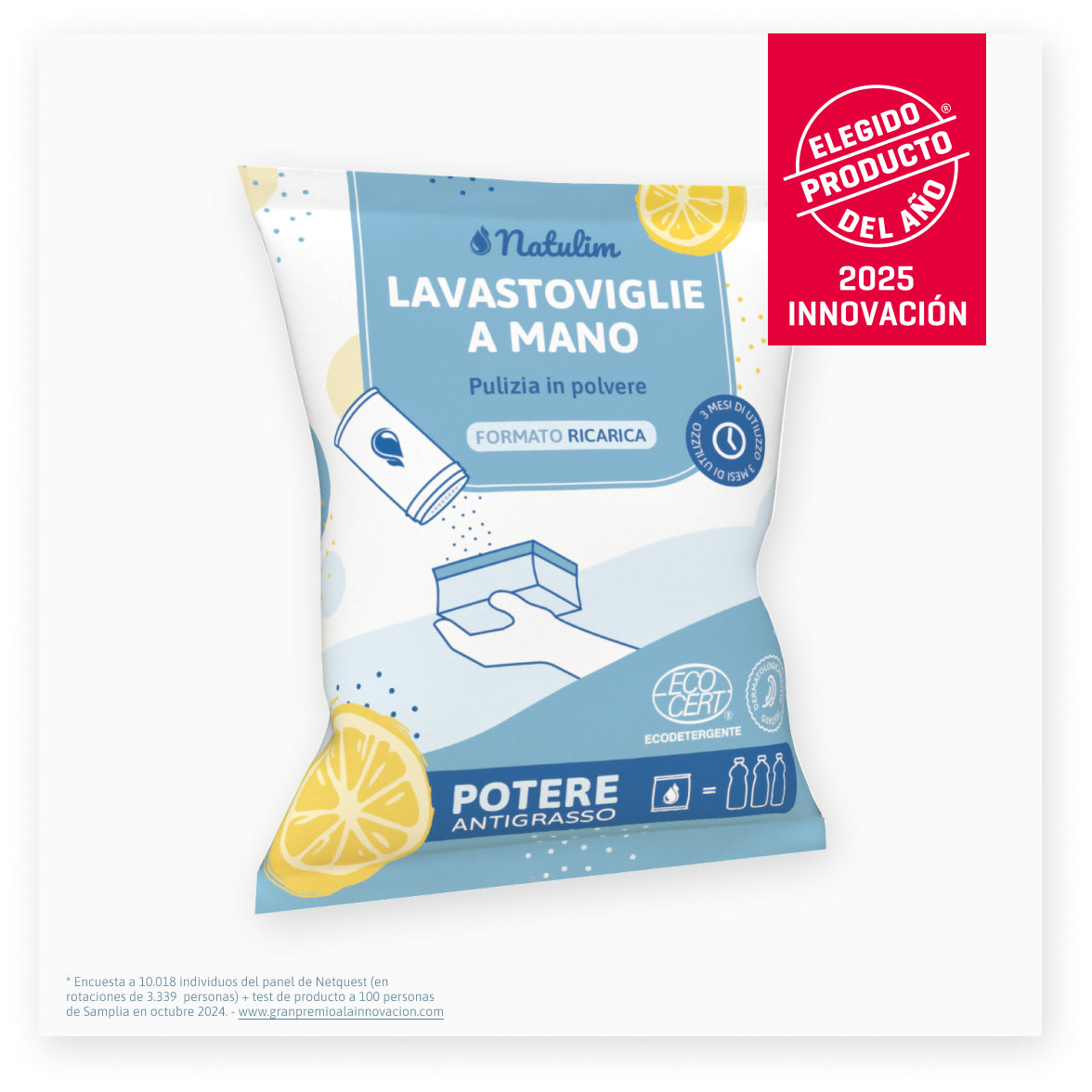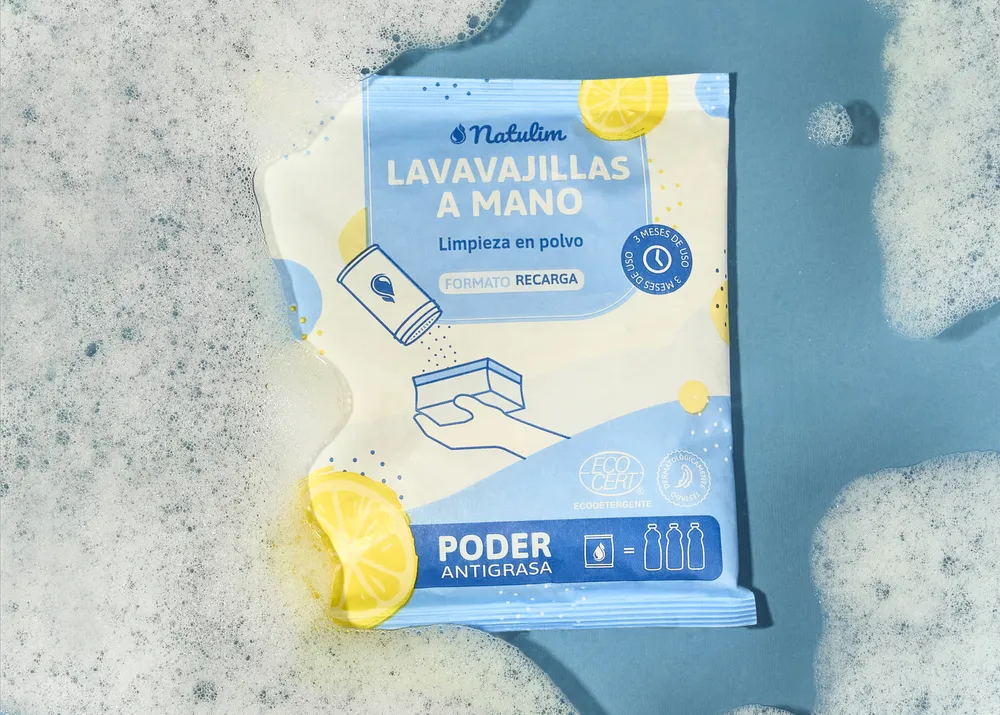 Si tratta di un sapone per piatti in un innovativo formato in polvere. Applicando una piccola quantità sulla spugna, genera una schiuma abbondante e duratura che elimina residui di sporco e grasso da piatti, utensili da cucina, padelle, pentole, ecc. La sua composizione rispetta l'ambiente ed è composta per il 94,4% da ingredienti di origine naturale.