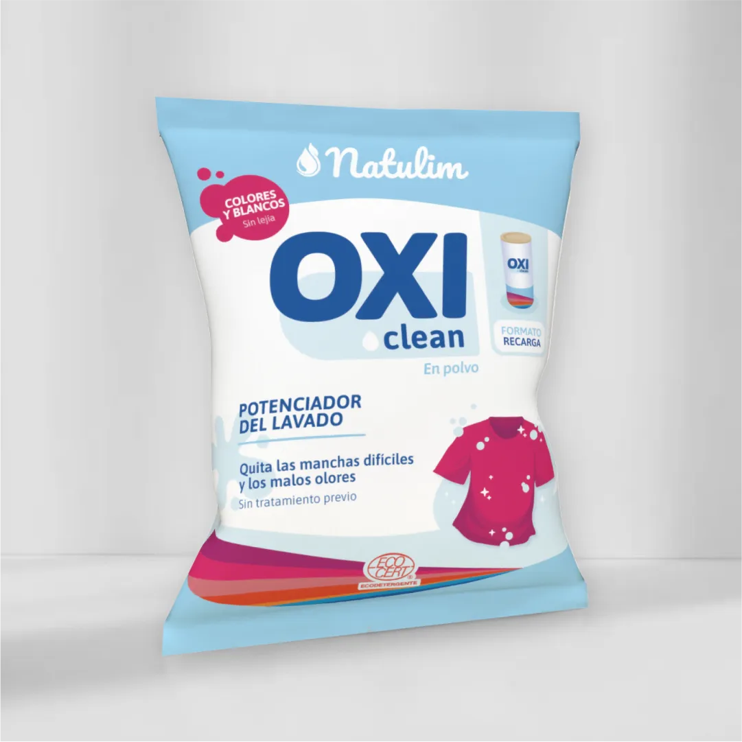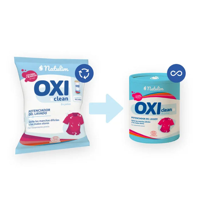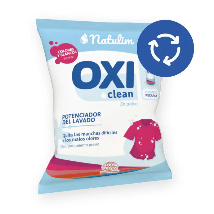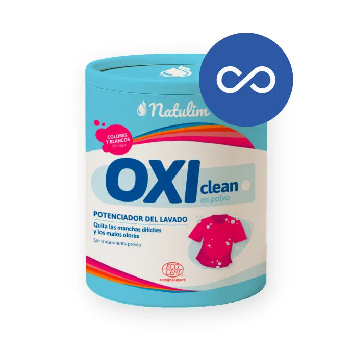 È un additivo per il bucato. Polvere in barattolo di cartone a base di ossigeno attivo (percarbonato di sodio). Combinare Oxi con il detersivo Natulim o tradizionale potenzia al massimo il risultato del lavaggio senza lasciare residui o sostanze tossiche.