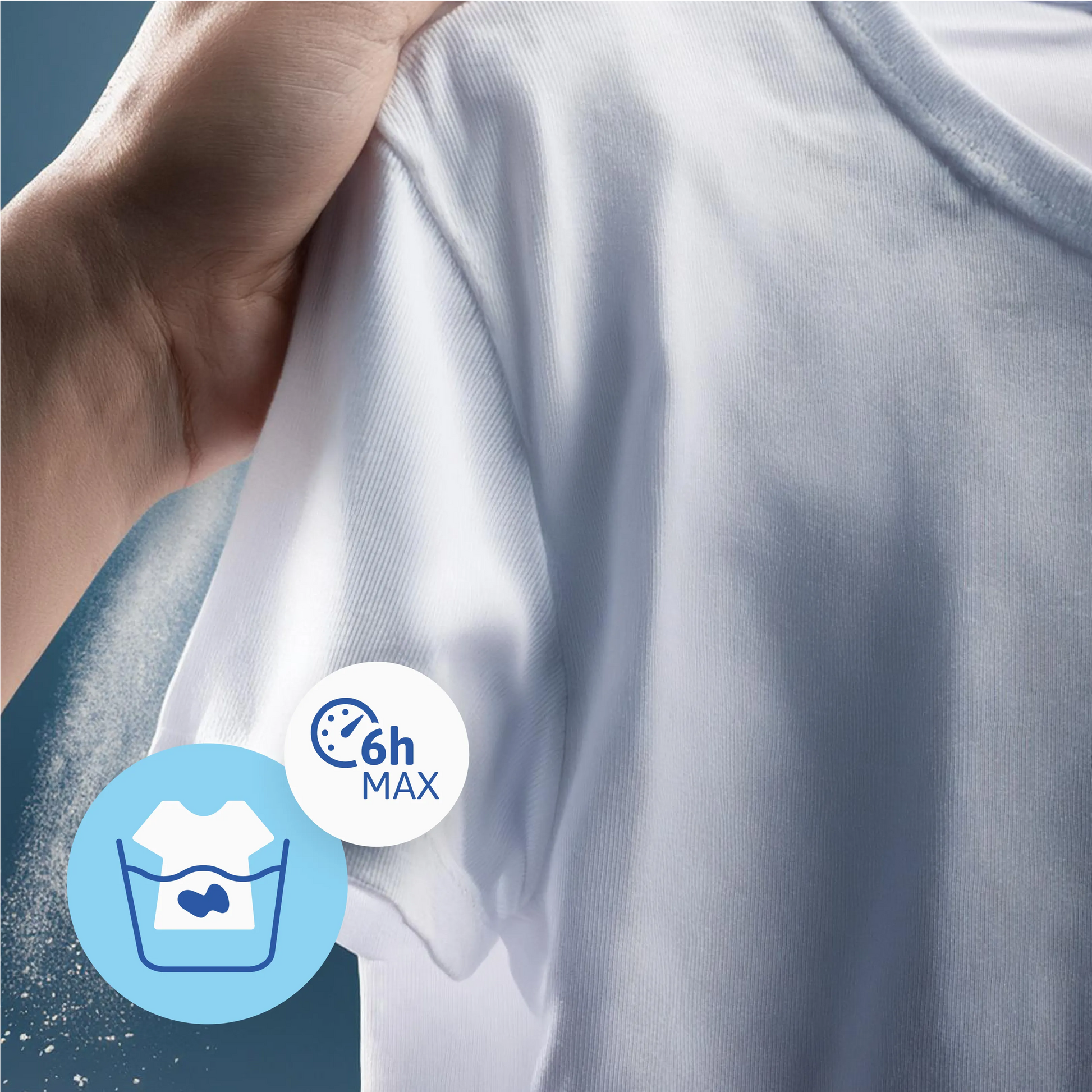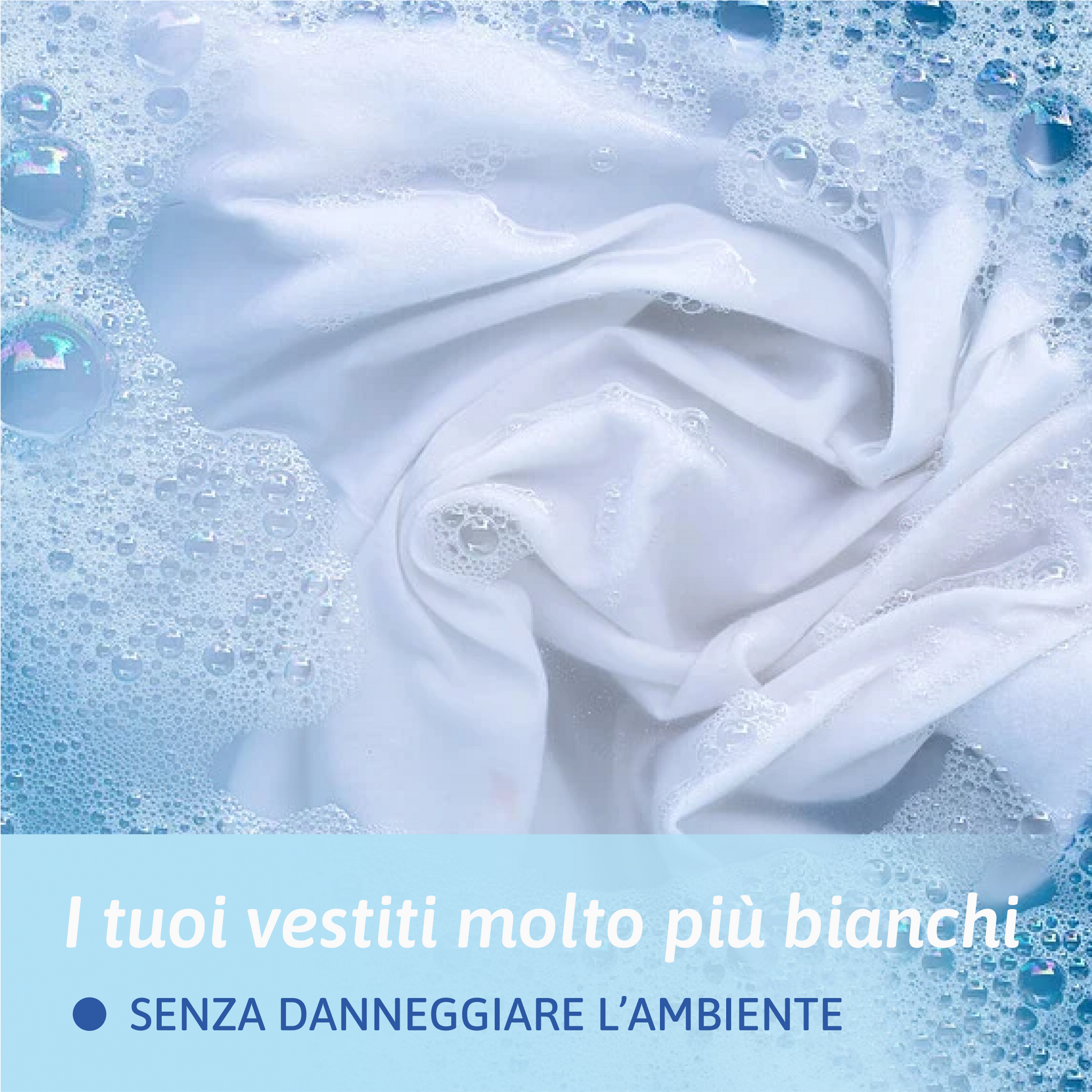 No. La funzione principale di Oxi è potenziare l'azione del detersivo e quindi migliorare il lavaggio. Va sempre utilizzato insieme a un detersivo.