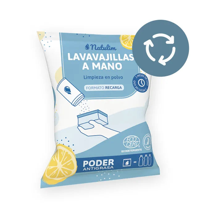 Riduci le bottiglie di plastica con il sistema ricaricabile: acquista solo la ricarica in polvere quando finisce. Certificato Ecocert con 94,4% di ingredienti naturali. Elimina il grasso anche dai contenitori più ostinati.