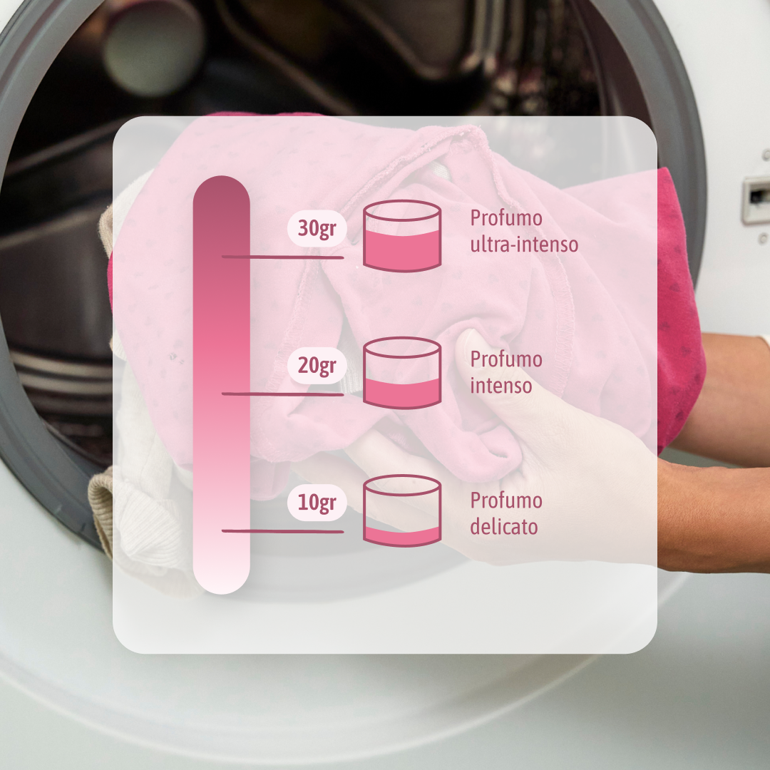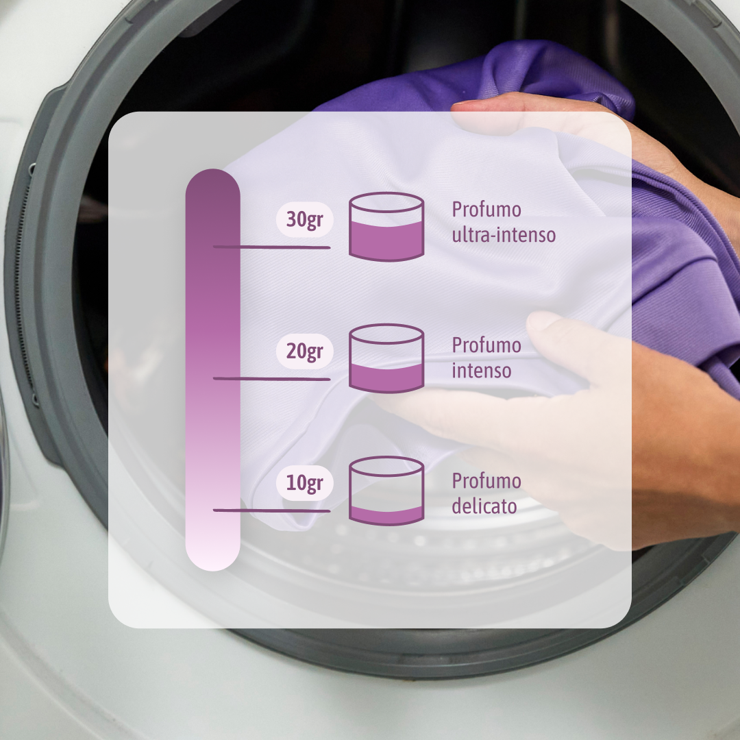 6% Fragrance (sintetica) + 3% Microcapsule scent (oli essenziali estratti da microcapsule per evitare macchie)