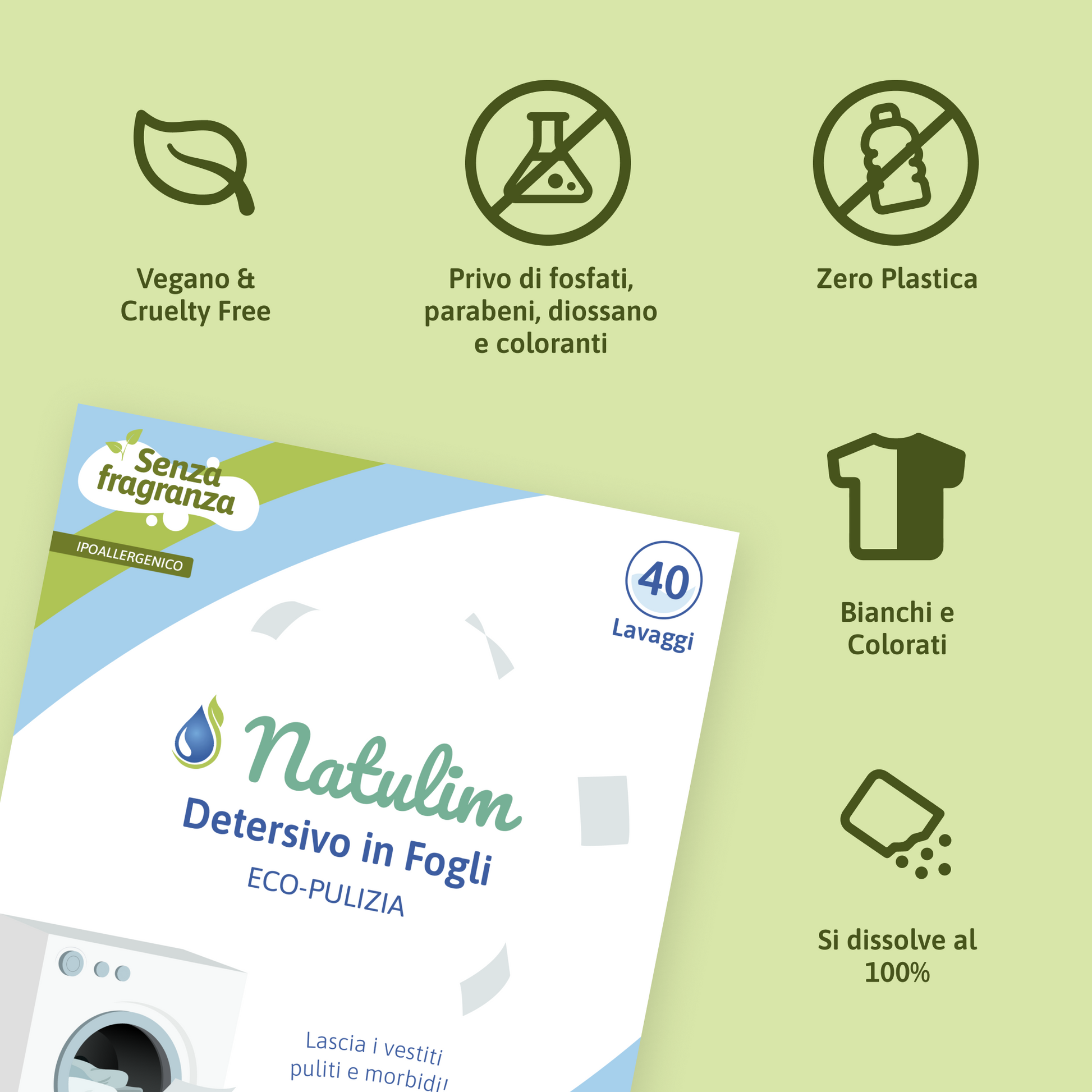 Natulim contiene ingredienti naturali che lasciano i tuoi capi naturalmente morbidi senza bisogno di prodotti aggiuntivi.